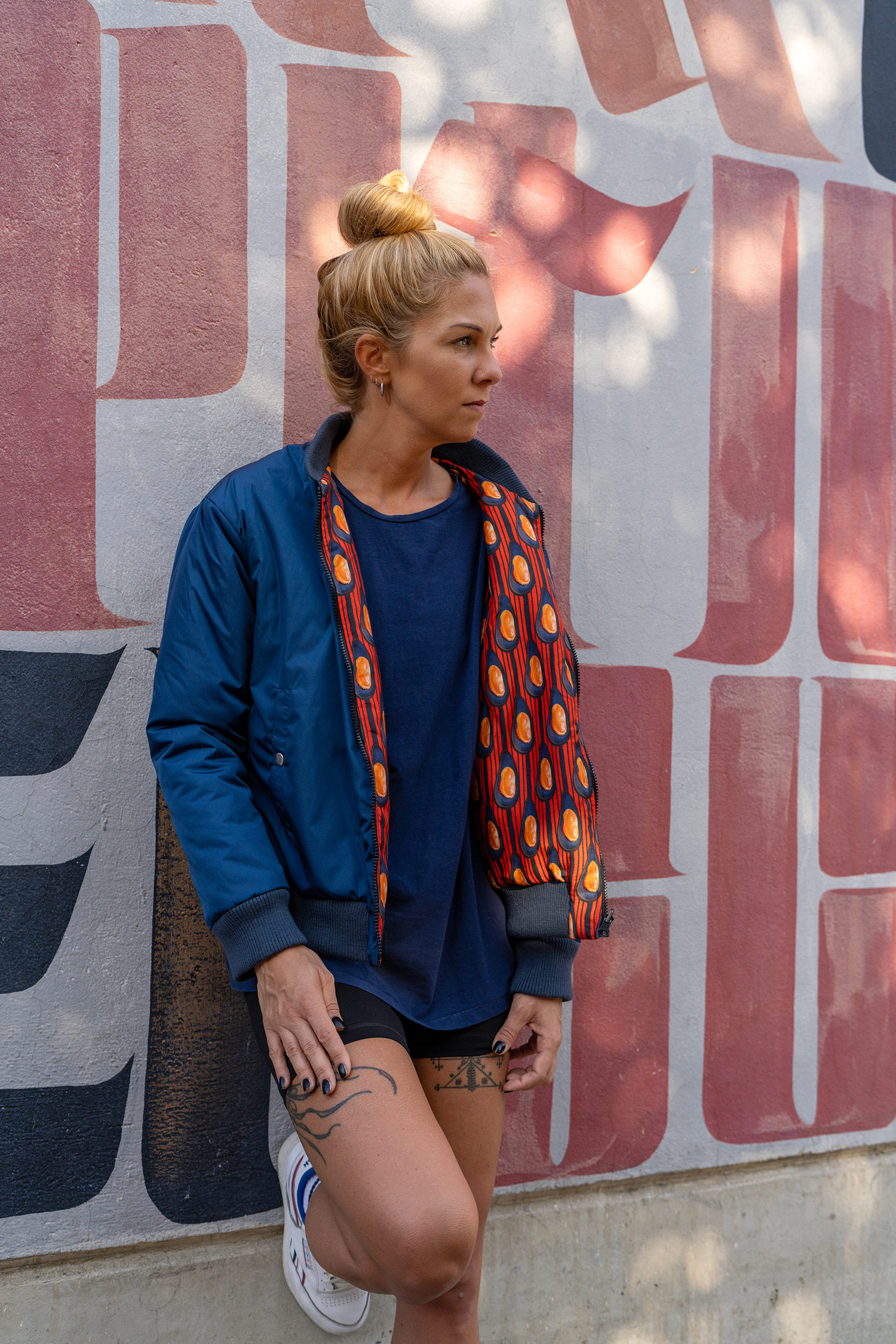I nostri bomber sono interamente double-face, realizzati con due tessuti rivoluzionari per un impatto ambientale minimo: